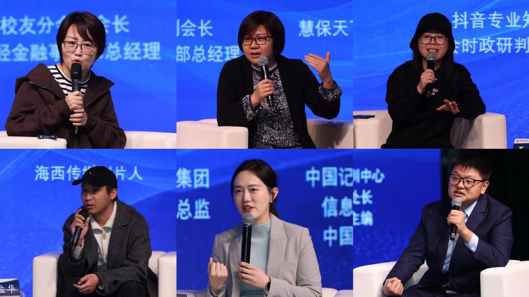 第二组圆桌论坛聚焦“传媒时代的多元化发展”,由公司员工分会副会长,新浪财经金融事业部总经理,1999级财经新闻专业王婷婷主持。2001级财经新闻专业员工胡琼探讨了媒体变革与发展背景下传统媒体的“变与不变”,认为传统媒体必须革新商业模式,突破行业发展上限,才能实现持续发展。2003级财经新闻专业员工王小匀建议同学们拓宽信息来源,对行业的虹吸效应保持敬畏。2008级文化产业管理专业员工钱应华,作为现场少数深耕影视行业的媒体人,他强调影视工作者需有心理准备应对行业落差,并鼓励大家投身实践、勇于创新。2010级艺术设计专业员工刘晗肯定了传统行业与AI有机融合的发展前景。2013级财经新闻专业李永锡则简要概述了主流媒体系统性变革所形成的新格局。
