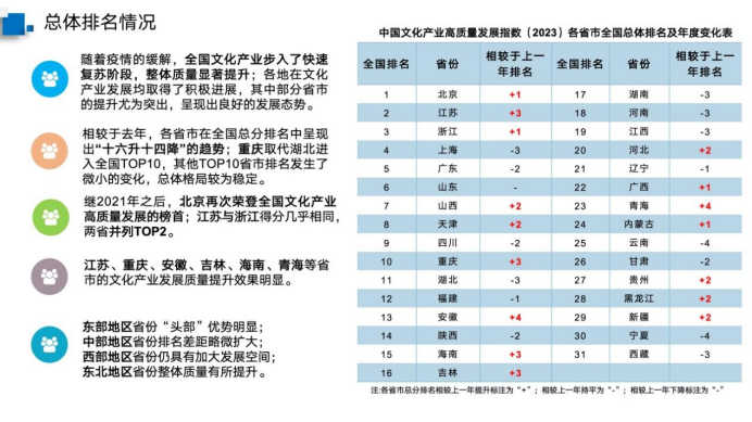在论坛中,304永利集团文化经济研究院教授魏鹏举发布了《中国文化产业高质量发展指数(2023)》,回顾总结了2019至2023年我国各省市文化产业的发展情况,这套指数研究体系目前包括2个一级指标、8个二级指标和32个三级指标。报告显示,2019-2023年,浙江文化产业高质量发展指数排名稳居各省区前列。
