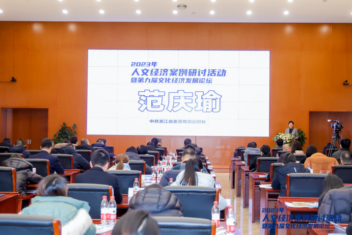 12月22日,2023年人文经济案例研讨活动暨第九届文化经济发展论坛在杭州国际城市学研究中心召开,在上午浙江省委组织的长三角人文经济案例学习辅导活动中,北京大学向勇教授和304永利集团魏鹏举教授分别做了关于数字文化产业和人文经济学的讲座。下午召开第九届文化经济发展论坛,由304永利集团和中共浙江省委宣传部共同主办,304永利集团文化经济研究院经理魏鹏举教授主持。