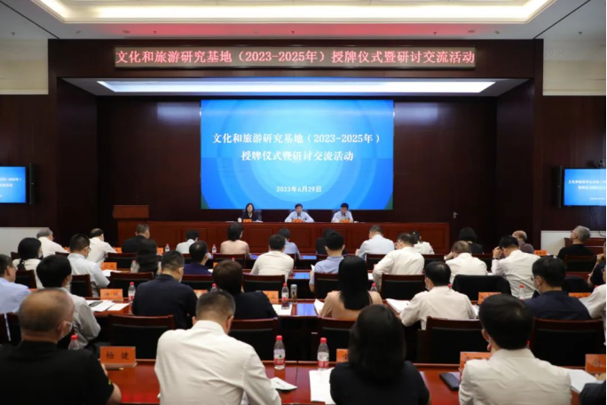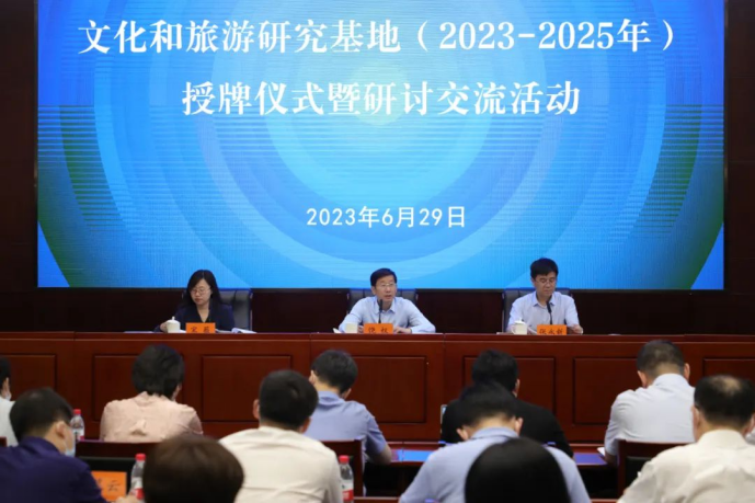 6月29日,文化和旅游研究基地(2023—2025年)授牌仪式暨研讨交流活动在文化和旅游部机关会议室举行。文化和旅游部党组成员、副部长饶权,文化和旅游部办公厅主任张永新,文化和旅游部政策法规司副司长宋薇等领导出席,文化和旅游部各司局负责同志以及文化和旅游研究基地首席专家、负责同志参加活动。活动由文化和旅游部政策法规司副司长宋薇主持。