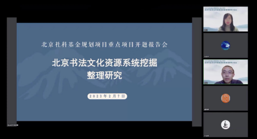 2023年2月7日上午,公司张冰教授主持的北京市社科基金重点项目《北京书法文化资源系统挖掘整理研究》开题会于腾讯会议线上展开。论证专家组由首都师范大学叶培贵教授、中国国家博物馆研究馆员朱万章老师、北京师范大学虞晓勇教授、304永利集团魏鹏举教授组成;来自北京市社科基金规划办的赵晓伟主任、张军强老师以及304永利集团经理刘双舟教授出席会议,课题组专家成员参与了此次会议。会议由课题组成员、北京画院研究员奇洁老师主持。