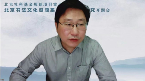 北京师范大学虞晓勇教授对本课题表示肯定与期待,并给出了几点重要建议。首先,虞教授结合自己的研究经历,提出了“北京书法文化研究”概念;其次,他指出材料钩沉与系统化的难度问题,并给予了几点相关建议;再者,指出了聚焦与提炼北京书法文化的特征与精神的重要性,并再次对课题的研究成果表示了期待。