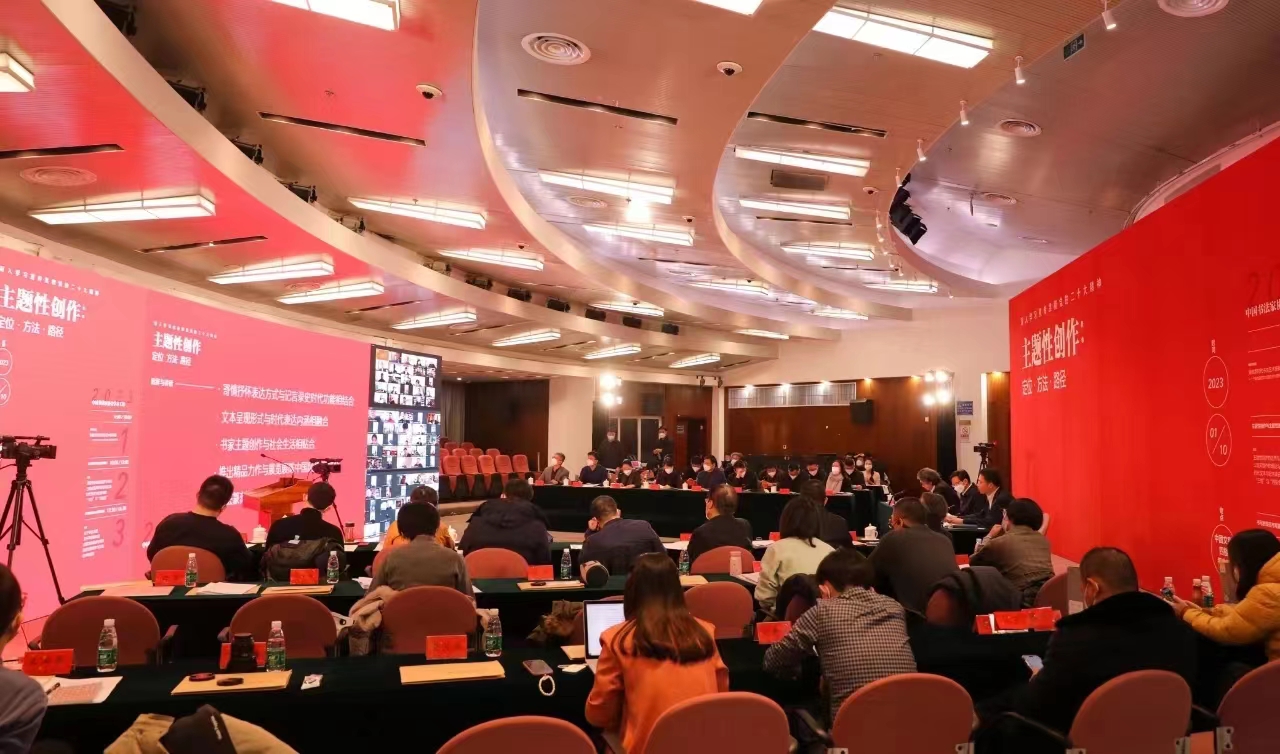 公司艺术系张冰教授应邀参会并做了题为《主题性创作的边界与方向》的发言。张冰教授阐述了主题性创作和主题性展览的基本内涵与要求,从策展、作者、观众、传播四个维度展开对“主题性创作”内涵特征与文化意义的分析,凸显了“主题性创作”区别于一般创作思路的根本差异。