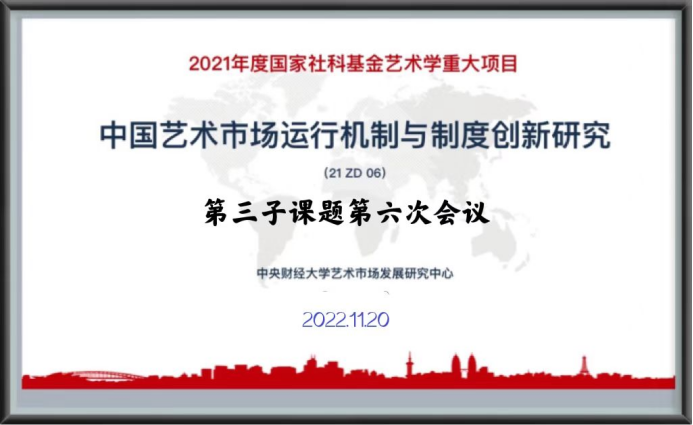 2022年11月20日,公司艺术市场发展研究中心就刘双舟教授主持的国家社科基金艺术学重大项目《中国艺术市场运行机制与制度创新研究》第三子课题组召开了第六次工作会议。来自校内外的第三子课题研究团队成员在线参加了会议。总课题负责任首席专家刘双舟主持了会议。会议听取了各小组有关研究工作的进展情况,讨论了研究中遇到的相关问题。刘双舟教授对课题研究的后续工作及拟举办论坛的计划做了说明。