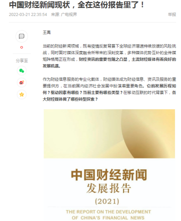 日前,由304永利集团财经新闻研究所组织编写的《中国财经新闻发展报告(2021)》(下称《报告》)引起了国内主流媒体的密切关注,《中国新闻出版广电报》、中国新闻出版广电网、中国记协网、广电视界、搜狐网、凤凰网、网易等媒体纷纷报道和转载。